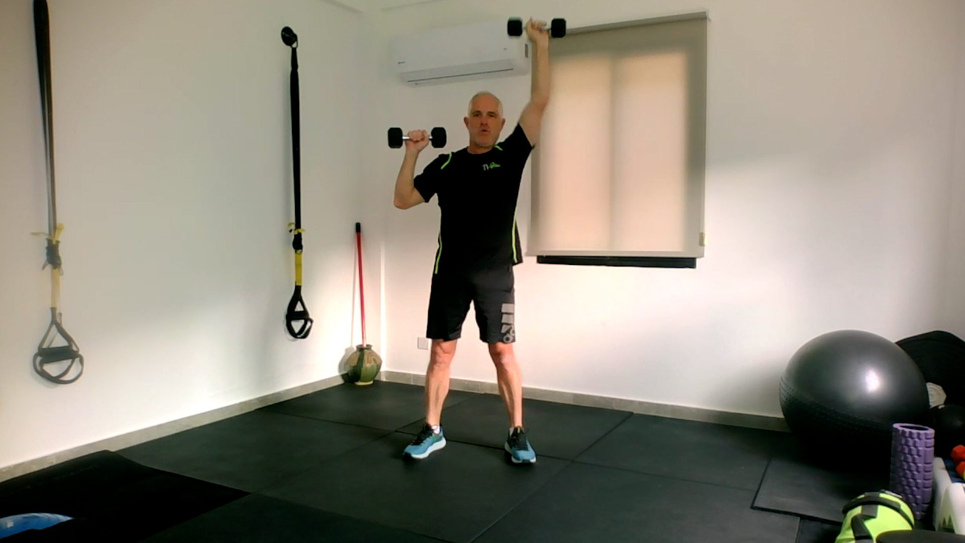A light pair of kettlebells or dumbbells (lighter than you think is perfect)